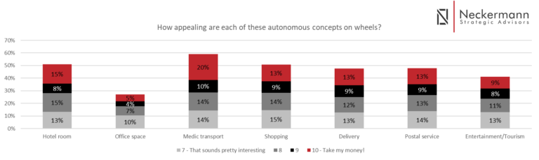 Also, think about the hospital system under pressure. In a survey for the study Being Driven we conducted at Neckermann Strategic Advisors, the respondents said that “medic transport” would be one of the most preferred usages of an AV.